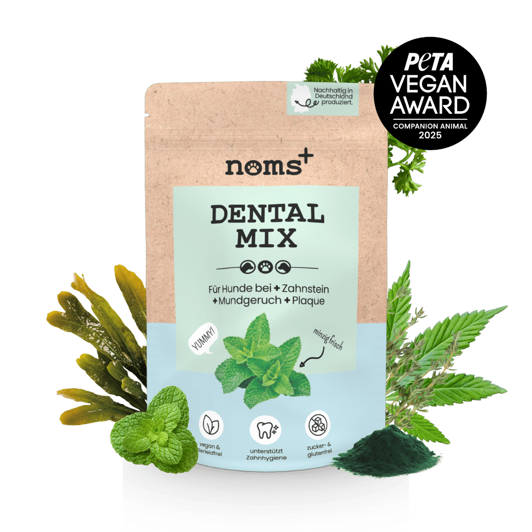 Verwende unser Dentalpulver, um die Mundhygiene deines Hundes zu verbessern, als Ergänzung zum Zähneputzen oder als Ersatz, wenn er dieses nicht zulässt. Anders als bei vielen Dentalsprays verteilt dein Hund den Dentalmix beim Kauen von selbst an allen Stellen, die auch von Zahnstein und Plaque betroffen sind. Genau hier zeigt die bewährte, natürliche Kräuterrezeptur, was sie kann: