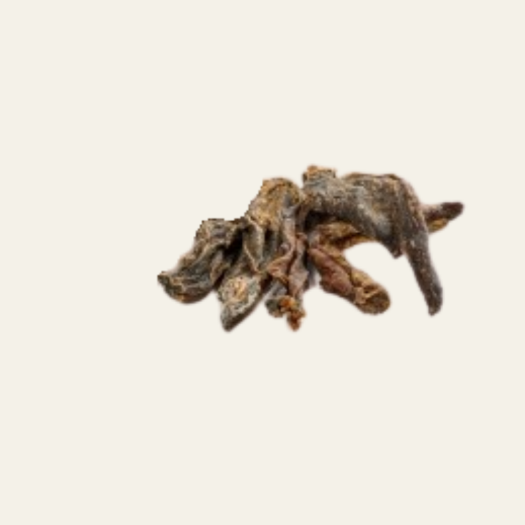 Die Känguru-Fleischstücke sind angenehm fest, bieten mittleren Kauspaß und eignen sich super als hochwertige Belohnung oder kleiner Snack zwischendurch. Durch ihre natürliche Beschaffenheit können sie leicht variieren – genau das macht echte Naturkauartikel aus.