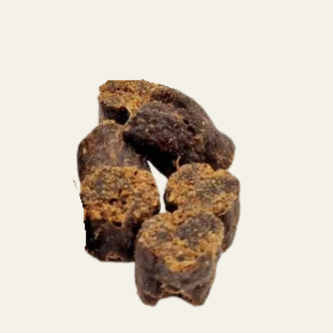 Die Crunchys werden aus ausgesuchtem Fleisch und sorgfältig ausgewählten Kräutern hergestellt – schonend getrocknet, ohne unnötigen Schnickschnack. So landet nur das im Napf, was du guten Gewissens füttern möchtest.