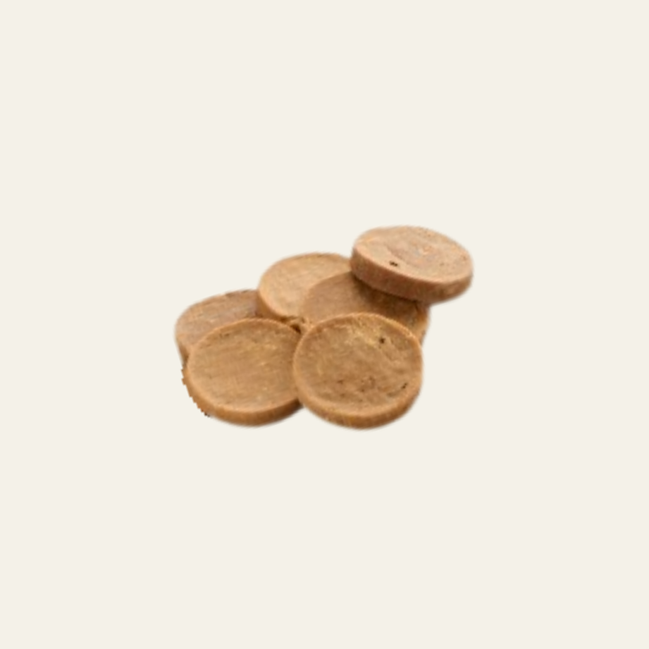 Einzelfuttermittel für Hunde. Aromatisch, knusprig, naturbelassen: Unsere Knusperscheibe Lachs wird schonend getrocknet, damit Geschmack und wertvolle Omega-3-Fettsäuren erhalten bleiben. Die feste Struktur sorgt für kurzen, befriedigenden Kauspaß und kann beim Kauen die Zahnpflege unterstützen, indem sich weiche Beläge leichter lösen. Getreidefrei, ohne künstliche Zusätze oder Konservierungsstoffe – ideal als Zwischenmahlzeit, auch für sensible Hunde und Allergiker.
