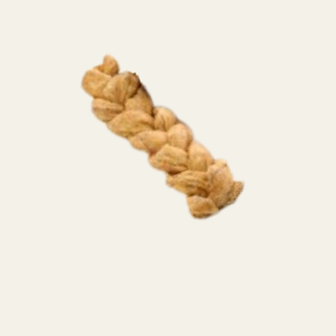 Durch das geflochtene Muster entsteht beim Kauen eine strukturierte Oberfläche. Das sorgt für angenehme Reibung und kann dabei helfen, Zähne und Zahnzwischenräume mechanisch zu „reinigen“. Die mittelfeste Beschaffenheit ist dabei nicht zu hart – dadurch ist der Kauartikel in der Regel für viele Hundegrößen und Altersstufen geeignet (bitte immer individuell schauen, wie dein Hund kaut).