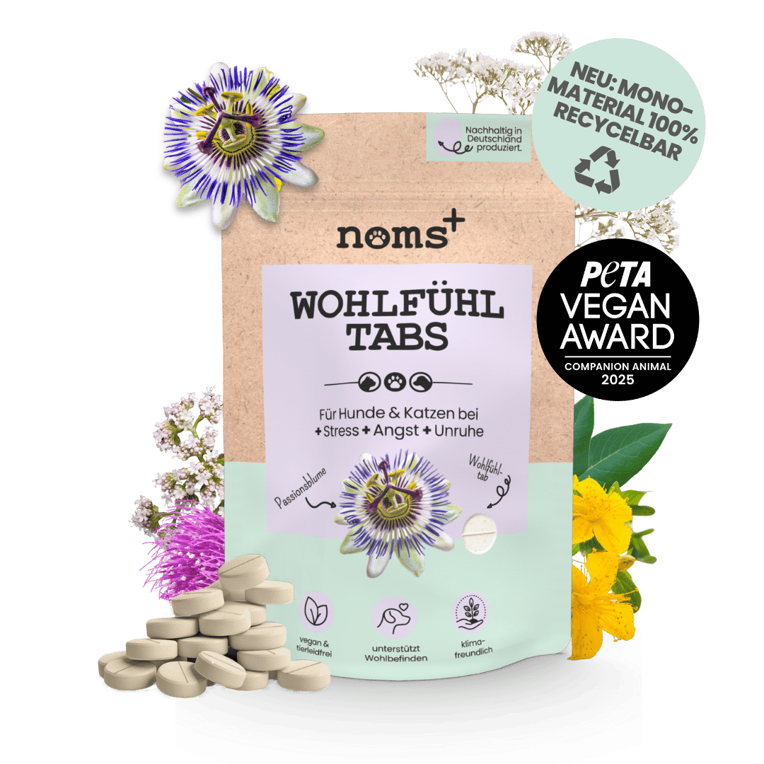 Stress, Angst, Aggression und Hyperaktivität sind häufige Symptome eines gestörten Wohlbefindens bei Hunden. "Dein Wohlfühlmix" von Nomsplus entspannt und unterstützt die Nerven deines Hundes, ohne müde zu machen. Die pflanzliche Rezeptur stärkt die Ausgeglichenheit deines Lieblings langfristig und akut - für erholsame Nächte und stressfreie Tage.